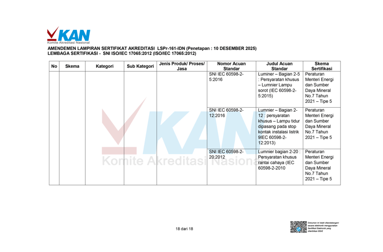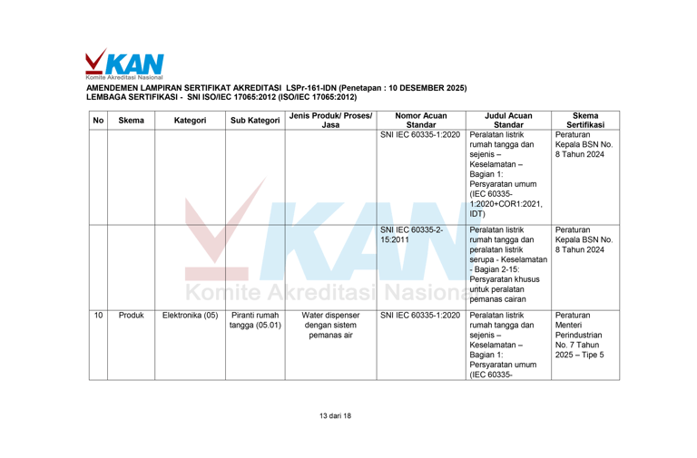 成立于 2025 年,其主要目标是通过专业可靠的认证和测试服务,支持提升印尼国内产品质量。我们致力于协助各行各业、中小微企业和政府机构确保其产品符合印尼国家标准 (SNI),并在国内和全球市场上保持竞争力。